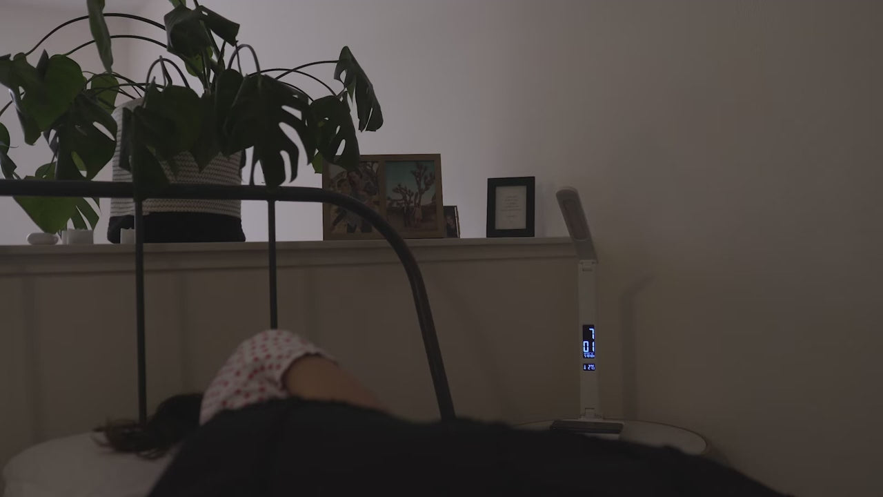 Unfortunately, this light has a mind of its own. Often it won’t turn off without being unplugged, or gets stuck on the highest setting. I think the settings button gets stuck, bc it rarely does what I want it to do. Would never buy this brand of product again, especially with how expensive it was.